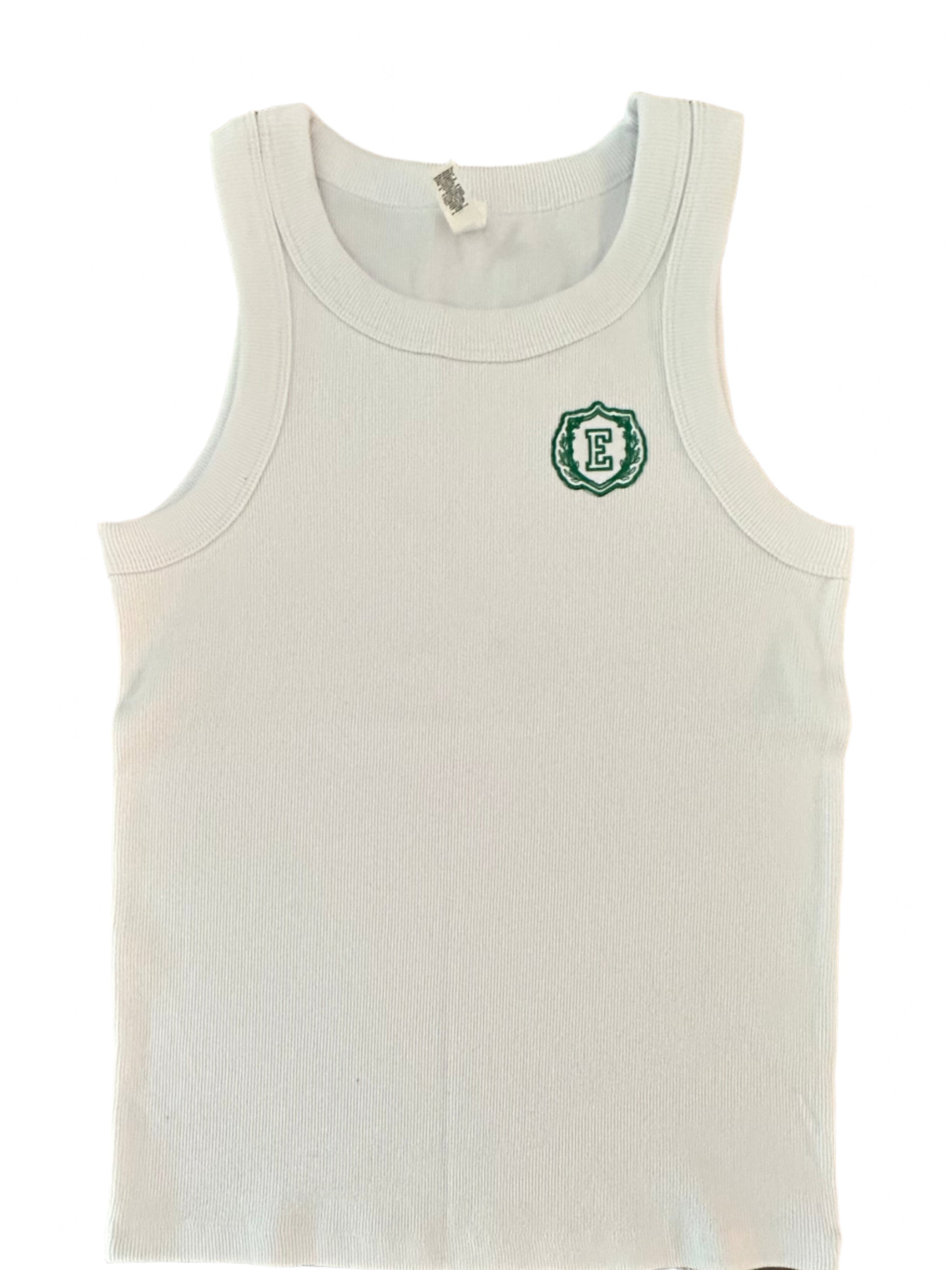Edina Crest Patch ironed and sewn onto tank. Beautifully classic and understated, with a bit of school spirit flare.